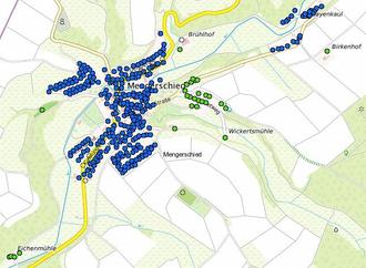 Wie in einer früheren Ausgabe berichtet, gibt es darüber hinaus noch das sogenannte „Graue-Flecken-Förderprogramm“, das vom Rhein-Hunsrück-Kreis koordiniert wird. Dieses Programm betrifft spezifische Gebiete in unserer Gemeinde wie Lametweg, Wildburgerstraße (Richtung Gatter, ab Abzweig Lametweg), Wickertsmühle, Birkenhof, Brühlhof und Eichenmühle (die grünen Punkte in der Grafik). Es ist derzeit noch unklar, ob die Umsetzung ebenfalls in diesem Schritt erfolgen wird. Wer sich zum „Graue-Flecken-Programm" noch nicht angemeldet hat, kann bei mir einen Online-Antrag für eine Grundstückseigentümererklärung anfordern.
