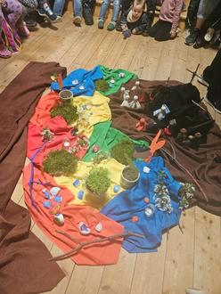 Auf kindgerechte Art wurde erzählt, wie Jesus mit seinen Jüngern zusammen saß, Brot und Wein teilte und den Jüngern die Füße wusch.