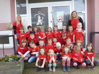 Die diesjährigen Vorschulkinder konnten in ihren neuen T-Shirts einen Ausflug zur Polizeiwache nach Simmern machen.