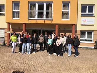 Abschluss dieser Unterrichtseinheit bildete ein Projekttag im Seniorenheim St. Hildegard in Simmern, welches die HuS-Gruppe einen Vormittag lang besuchte. Neben vielen Informationen und Eindrücken während eines ersten Rundgangs war für die Schülergruppe besonders die Umsetzung eigener Angebote mit den Bewohnern des Seniorenheims interessant. Im Vorfeld hatten sie diese im Unterricht vorbereitet und auch selbst ausprobiert, wie z. B. Sitz-Kegeln, Bewegungstanz, Stadt-Land-Fluss und Ballon-Federball. Vor Ort hatten sie dann die Gelegenheit, diese Angebote mit Seniorengruppen selbstständig durchzuführen, was von den Bewohnern sehr positiv angenommen wurde. An dieser Stelle noch einen herzlichen Dank an das Team des Seniorenheims St. Hildegard, insbesondere an Frau D`Avis, Frau Heinrich und Herrn Schmidt, die der HuS-Gruppe einen sehr guten Einblick in das Seniorenheim, das Thema Pflege und auch die Möglichkeiten der vielfältigen Berufsbilder gegeben haben.