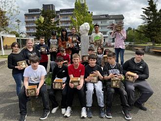 An einem Projekttag bauten die SchülerInnen Im Werkraum Insektenhotels v.a. für Wildbienen. Dabei wurde auch auf Upcycling geachtet, denn es wurde ausschließlich Abfallholz verwendet.