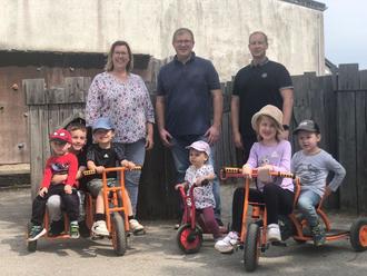 Schon lange haben sich die Kinder der KiTa in Kisselbach neue Fahrzeuge für den Außenbereich gewünscht. Gemeinsam mit den ErzieherInnen konnten sie sich aus einem dicken Katalog drei neue Dreiräder aussuchen. Dank der zahlreichen Spenden konnten die neuen Räder, über den Förderverein der KiTa, erworben werden. Diese wurden durch den Vorstand des Fördervereins an die KiTa-Leitung, Frau Melanie Erbes und die glücklichen Kinder übergeben.
