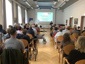 Am 12.05.2023 fand im Neuen Schloss in Simmern ein Vortrag der Alzheimer Gesellschaft e.V. zum Thema Demenz statt. Über 80 Besucher*innen verfolgten interessiert den Vortrag von Monika Bechtel, die ihre Erfahrungen im Umgang mit ihrer an Demenz erkrankten Mutter in einem Buch festhielt. Einfühlsam beschrieb Frau Bechtel viele Alltagssituationen, mit denen pflegende Angehörige häufig konfrontiert werden und gab den Zuhörer*innen praktische Tipps zum Umgang damit.