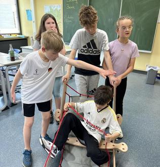 Dank der finanziellen Unterstützung des Fördervereins der Friedrich-Karl-Ströher Realschule plus in Simmern und des Jahrgangs 1973 der ehemaligen Hauptschule Simmern konnte ein Seifenkisten- Set angeschafft werden. Die Klasse 5b stellte sich der kniffligen Aufgabe und löste den Bau in Kleingruppen gemeinschaftlich. Es entstanden drei fahrtüchtige Fahrzeuge, welche in einem Parcours auf dem Schulhof erprobt wurden. Während des Schulfestes konnten die Gäste die Seifenkisten bestaunen und Probefahren.