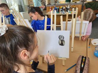 Inspiriert durch die Farben und Maltechnik des Malers machten sich die Schülerinnen und Schüler sogleich noch vor Ort an die Arbeit. Nicht das reine „Abmalen“ der Bilder stand im Vordergrund des zweistündigen Workshops, sondern die eigenständige kreative Auseinandersetzung mit den Werken Ströhers. Auf diese Weise kombinierten die Fünftklässler Motive verschiedener Bilder miteinander oder verfremdeten die ursprünglichen Bilder, indem sie beispielsweise andere Farben verwendeten. Am Ende waren alle sehr stolz auf ihre Bilder, die nun teilweise auch im Rahmen der jährlichen Kunstaustellung der Friedrich-Karl-Ströher Realschule plus Simmern in der letzten Schulwoche den Schülern der gesamten Schule präsentiert werden. Doch war dies nicht der erste und letzte Besuch der Klasse im Hunsrück-Museum. Die Schülerinnen und Schüler durften bereits während der Projekttage in die Aufbauarbeiten der aktuellen Museumsausstellung „Neuland“ hineinschnuppern. Vom fertigen Ergebnis waren die Schüler nun so begeistert, dass sie in Kürze innerhalb eines eigenen Projekttages die Ausstellung gemeinsam in aller Ruhe erkunden wollen.