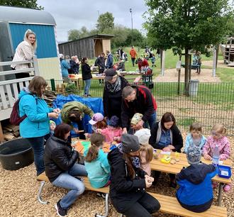 Die Einrichtung der Waldgruppe und deren Standort wurden Mitte Juni mit einem kleinen Fest gebührend gefeiert. Alle Kinder waren mit ihren Familien eingeladen, sich den neuen Bauwagen anzuschauen und bei Spielen rund um den Bauwagen und auf dem Gemeindespielplatz einen schönen Nachmittag zu erleben. Der Weg zum Bauwagen wurde anhand von vielen Bildern für alle Interessierten visualisiert.