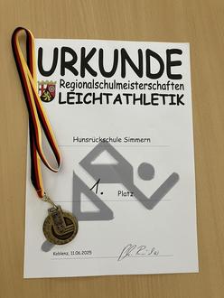 Mit großem Erfolg hat die Hunsrückschule Simmern an den Regionalschulmeisterschaften Leichtathletik in Koblenz am 11.06.2025 teilgenommen. Mit 33 erkämpften Medaillen, davon 8x Bronze, 13x Silber und 12x Gold, konnten die Schüler und Schülerinnen am Ende des Wettkampfes glänzen und sicherten sich hiermit den 1. Platz in der Gesamtwertung.