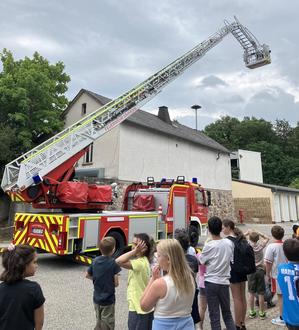 Zum Abschluss des Schuljahres hat die Unterstufe der Hunsrückschule einen Ausflug zur Feuerwehrstation in Simmern gemacht. Viele Wissensfragen konnten gestellt und durch die Feuerwehrmänner beantwortet werden. Am spannendsten war das Ausfahren der Feuerwehrleiter sowie die Besichtigung der einzelnen Räume und Feuerwehrautos in der Feuerwehrwache.