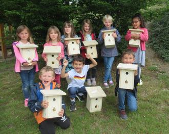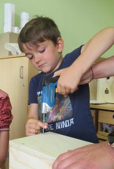 Gemeinsam mit Sophie bauten sie mit viel Freude und Spaß ihren eigenen Nistkasten zusammen.