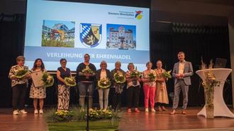 Als Höhepunkt des Abends freute sich Bürgermeister Boos die Ehrennadel an verdiente Bürger*innen verleihen zu dürfen