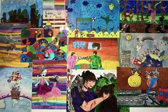 Die Klassen 1 bis 10 der Hunsrückschule Simmern haben in diesem Jahr erneut mit Erfolg am internationalen Jugendwettbewerb „jugend creativ“ der Volksbanken Raiffeisenbanken teilgenommen. Zur Thematik „WIR. Wie sieht Zusammenhalt aus?“ haben die SchülerInnen eigene kreative Ideen in Form von selbstgemalten Bildern zum Ausdruck gebracht. Zwölf Gewinnerbilder wurden ausgewählt und bei der Siegerehrung in der Stadthalle in Kirchberg ausgezeichnet. Herzlichen Glückwunsch!
