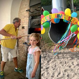 Die diesjährige Abschlussfeier unserer „Wackelzähne“ startete in Kastellaun auf dem Barfußpfad. Mit dem Bus ging es anschließend nach Laubach zum Backes. Begleitet durch Herrn Müller durfte jedes Kind seine eigene Pizza kreieren und diese wurde im Backes gebacken. Ein tolles Erlebnis für die kleinen Pizzabäcker. Zum Abschluss des Tages ging es zurück zur Kita. Dort rutschten alle zukünftigen ABC Schützen traditionell durch den „Wackelzahnbogen“ und wurden von ihren Eltern mit Beifall empfangen.