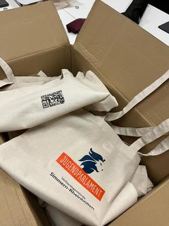 Interessierte können gerne eine Tasche erhalten. Am einfachsten per E-Mail jugendparlament@sim-rhb.de oder Instagram-Nachricht an @jupa.simrhb.