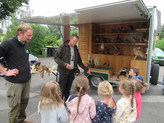 Am 02. und 03.07.2024 war die “Erlebnisschule Wald und Wild“ bei uns in der KiTa Kleine Heimat zu Besuch. Es war ein großer Anhänger, der auf unserem Hof geparkt wurde. Herr Maarten van den Berg und Herr Chris Augustin konnten uns ganz viel zeigen, erzählen und erklären. Sie hatten fast alle Tiere, die bei uns im Wald leben, mit dabei. Die Tiere waren präpariert und wir konnten sie alle anfassen.