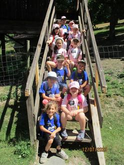 12 Vorschulkindern mit dem Bus auf den Weg nach Rheinböllen in den Tierpark. Hier verbrachten wir den Tag und hatten viel Spaß gemeinsam beim Spielen, Tiere füttern und picknicken. Besonders das Spielen mit Wasser und kochen an der Matschküche auf dem Spielplatz hat den Kindern viel Freude bereitet. Gut gestärkt mit Bratwurst und Eis machten wir uns nachmittags auf den Weg zum Kindergarten, wo die Eltern bereits auf die Kinder zum großen „Rausschmiss“ warteten. „Wir runkeln und schunkeln die Schulkids aus der Kita und wenn sie nicht wollen, dann schmeißen wir sie raus ...“ mit diesem lustigen Spruch wurde jedes einzelne Vorschulkind aus der Kita geworfen und bekam ein tolles Abschiedsgeschenk überreicht! Wir wünschen unseren „Großen“ auf diesem Wege einen tollen Schulstart!
