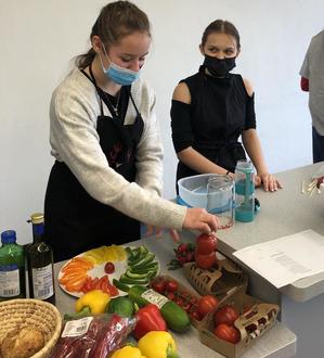 Für die Küchenpraxis, bei der es um die Verwertung von Lebensmitteln ging, spendierte der REWE-Markt Lebensmittel, die so vor der „Tonne“ gerettet wurden.