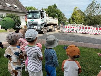 Eine Baustelle neben dem Kindergartengelände ist super praktisch. Man muss nicht weit gehen und kann Bagger, Kipper, Radlader und sonstige tolle Dinge beobachten. Als das Stromhäuschen abgerissen wurde, konnten unsere kleinen und großen Beobachter alles genau aus der Nähe bestaunen. Hoffentlich gibt es bald wieder eine Baustelle in unserer Straße.