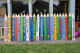 Wir, die Schukis der Kita Argenthal, haben unseren Abschluss gefeiert. Dieser begann mit einem gruppeninternen Filmenachmittag. Nach der anschließenden Kinderdisco warteten die Eltern bereits im Garten der Kita. Jeder von uns wurde dann nacheinander rausgeschmissen und erhielt seine Urkunde und ein Geschenk. Danach wurde das Abschiedsgeschenk an die Kita verteilt (siehe Bild) und im Anschluss gemeinsam gegrillt.