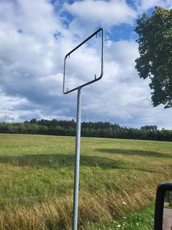 Dies schien sich schneller rumzusprechen als erwartet, denn am Samstag, 12.08.23 haben es die Täter am verlassenen Ortseingangsposten wieder abgelegt.