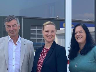 v.l.n.r.: Michael Boos, Bürgermeister VG Simmern-Rheinböllen, Ministerin Dörte Schall, Simone Hösterey, Leitung BTV AWO Rhein-Hunsrück e.V.