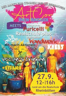 Die Verbindung der Puricelli Realschule plus und art.con schafft so einen besonderen Marktplatz für Kunst, Handwerk und Begegnung. Wer Freude am Ausprobieren hat oder sich einfach inspirieren lassen möchte, ist herzlich eingeladen. Und Kreativität macht hungrig – deshalb wird zur Stärkung hausgemachtes warmes Mittagessen sowie Kaffee und Kuchen angeboten.