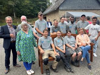 Stellvertretend für Bürgermeister Michael Boos gratulierte er der gemeinnützigen Ausbildungsstätte im Tischlerhandwerk und überreichte als Anerkennung für deren wertvolle Arbeit eine kleine Spende.