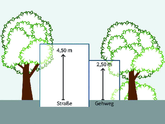 Um Fahrzeugen und Personen ein gefahrloses Passieren von Straßen, Wegen und Plätzen zu ermöglichen, ist der jeweilige Lichtraum entsprechend frei zu halten. Über Gehwegen muss dabei eine lichte Höhe von mindestens 2,50 m und über Fahrbahnen eine lichte Höhe von 4,50 m eingehalten werden. Der seitliche verkehrsraum ist innerhalb von Ortsdurchfahrten in einer Breite von 0,75 m und außerhalb von Ortsdurchfahrten von 1,25 m freizuhalten.