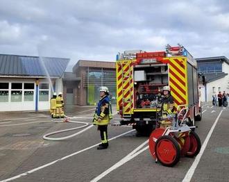 „Fenster zu, Licht an, schnell aufstellen!“ – So lautete das Kommando, als der Feueralarm an der Schöllhammer-Grundschule ausgelöst wurde. Zügig und geordnet begaben sich alle Klassen auf den vorgesehenen Aufstellplatz. Die Schülerinnen und Schüler hielten sich vorbildlich an die vereinbarten Regeln, sodass das gesamte Schulgebäude innerhalb weniger Minuten vollständig geräumt war. Kurz darauf traf die Feuerwehr Simmern mit mehreren Fahrzeugen auf dem Schulgelände ein. Mithilfe von Drehleiter und Löschwasser wurde die Ursache des Alarms überprüft. Zum Glück handelte es sich nur um die jährliche Feueralarm-Übung – ein wichtiger Bestandteil der Sicherheitsmaßnahmen an unserer Schule. Als Belohnung durften die Kinder im Anschluss die Einsatzfahrzeuge der Feuerwehr aus nächster Nähe bestaunen – ein spannendes Erlebnis!