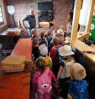Am Freitag, den 08.09.2023, war es soweit: Die Vorschulkinder der Kindertagesstätte „Wirbelwind“ in Laubach waren zu Besuch in Niederkumbd. Wir wurden vom Bürgerbus an die Mühle gebracht und haben uns dort gemeinsam angeschaut, wie sich das Mühlenrad dreht, die Getreidekörner verarbeitet und anschließend zu feinem Mehl gesiebt wurden. Unser Hauptziel an diesem Tag war der Backes in Niederkumbd - hier wurden wir zum Pizza backen eingeladen! Nach der Ankunft am Backes, konnten wir zusehen, wie der Ofen angeheizt wurde und unsere Pizzateige ausgerollt wurden.