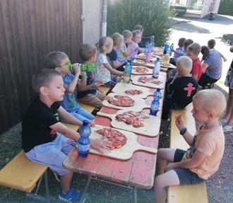 Nach einer kleinen Pause auf dem Spielplatz, hat jedes Kind seine Pizza nach Belieben belegt und anschließend dabei zugesehen, wie die Pizza in den Ofen geschoben wurde. Nach ca. 5-10 Minuten waren die Pizzen bereits fertig und jedes Kind konnte seine selbstkreierte Pizza genießen!