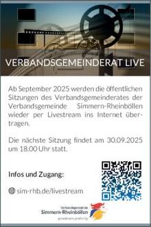 Sitzung des Verbandsgemeinderates der Verbandsgemeinde Simmern-Rheinböllen am 30.09.2025 um 18:00 Uhr im großen Saal im Neuen Schloss, Am Schlossplatz, 55469 Simmern/Hunsrück