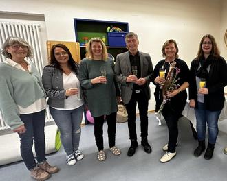 Mit einem Rückblick auf ihren beruflichen Werdegang, einem kleinen Lied, Blumen und Getränken wünschten wir ihr weiterhin alles Gute und Gelingen für die Zukunft.