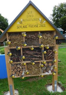 Die Eltern unserer diesjährigen Schulkinder überreichten uns bei der Abschiedsfeier am 02.09.2022 ein ganz tolles Abschiedsgeschenk. Ein selbstgebautes und mit den Kindern, unseren „schlauen Füchsen“, gestaltetes Insektenhotel. Wir bedanken uns ganz herzlich für das schöne Geschenk, der Firma Herrmann für das Material und werden gern beim Beobachten und Erforschen der neuen Mitbewohner an unsere ehemaligen Kinder zurückdenken.