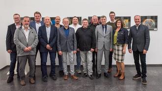 von li. nach re.: Michael Schubach – Ortsgemeinde Steinbach, Volker Wichter – Ortsgemeinde Neuerkirch, Günter Kunz – Ortsgemeinde Kümbdchen, Klaus Nick – Ortsgemeinde Klosterkumbd, Johannes Herrmann – Ortsgemeinde Riesweiler, Gerd Martin – Ortsgemeinde Sargenroth, Jose Miguel Nieves Päschkes – Ortsgemeinde Rayerschied, Carsten Halm – Ortsgemeinde Mengerschied, Dieter Michel – Ortsgemeinde Mörschbach, Michael Boos – Bürgermeister der Verbandsgemeinde Simmern-Rheinböllen, Karsten Krämer – Ortsgemeinde Keidelheim, Elke Härter – Ortsgemeinde Bubach, Karl-Heinz Bohn – Ortsgemeinde Laubach