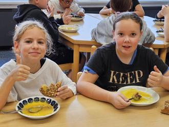 So wurde in der Schulküche leckere Kartoffelsuppe gekocht und gemeinsam verspeist. Außerdem konnten die Kinder beim Kartoffeldruck ihre Kreativität unter Beweis stellen.