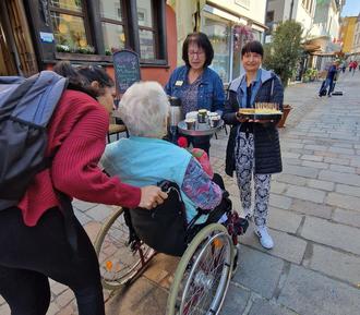 Voller Erwartung, Neugierde und Vorfreude starteten Besucher*innen und Bewohner*innen aller Simmerner Pflegeeinrichtungen in Begleitung von Schülerinnen und Schülern der Berufsbildenden Schule Simmern, der Gesundheits- & Pflegeschule der Stiftung kreuznacher diakonie und der Schule für Physio- & Ergotherapie Simmern (Medischule) zu einem Einkaufsbummel in der Simmerner Innenstadt.