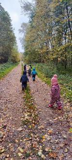Morgens ging es mit einem großen Picknick Richtung Argenthaler Wald und auf ins Abenteuer. Mit 9 aufgeregten Kindern haben wir heute unseren Vormittag im Wald verbracht. Wir konnten kleine Spuren im weichen Waldboden erkennen und haben uns zusammen den besten Platz für eine Pause ausgesucht. Besonderes Spielzeug mussten wir heute nicht mitnehmen, denn der Wald und die Natur bieten uns mehr als genug Spielmöglichkeiten. Genau das haben wir auch an den Kindern beobachten können, sie waren alle sehr ausgeglichen und sind in ein lang anhaltendes Rollenspiel übergegangen. Waldtag sind uns besonders wichtig, da Kinder die Jahreszeiten viel besser erleben und erkennen können. Sie testen sich an ihren eigenen Kräften beim Springen, Rennen, Toben oder auch beim Balancieren und lernen auf die Natur Rücksicht zu nehmen. Ein weiterer Aspekt unserer Waldtage ist die Förderung der ganzheitlichen Entwicklung und Förderung der Fantasie. Äste werden beispielsweise zu einer Säge, ein Zapfen zu einem Nagel und die Kastanien zu Münzen. Die Löwenkinder waren am Freitag sehr zufrieden mit ihrem Tag und haben den Kindern im Flur von ihren Erlebnissen berichtet.