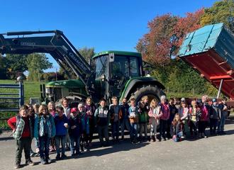 Am Freitag, den 07.10. besuchte die 1. und 2. Klasse der Grundschule am Waldsee den Kauerhof. Dort besichtigten die Kinder den Milchviehstall der Familie Berg. Fasziniert beobachteten sie das Melken in der voll automatisierten Melkanlage. Die Kinder waren sehr interessiert an den 220 Milchkühen und Joachim Berg klärte zahlreiche Fragen und erzählte u.a. Wissenswertes zu den Tanspondern, die die Kühe um den Hals tragen.
