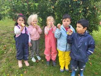 Doch damit nicht genug: Auch beim Apfelverkauf waren die Kinder mit vollem Einsatz dabei. Sie haben Tüten liebevoll bedruckt, die Äpfel gewogen, eingepackt und verkauft – ganz wie die Großen. In unserer Kita-Küche entstanden außerdem leckere Apfel-Schoko-Zauberwürfel, die wir uns natürlich gemeinsam schmecken ließen.