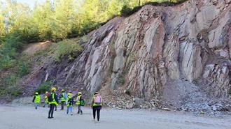 Es dauerte nicht mehr lange und wir erreichten den Steinbruch. Dort bekamen alle Kinder und auch die Erwachsenen einen Bauhelm aufgesetzt. Dazu gab es für jedes Kind eine Tasche mit einer Weste und Verpflegung. Dafür waren alle sehr dankbar, denn die Besichtigung, die wir dort machten, war sehr anstrengend aber auch informativ.