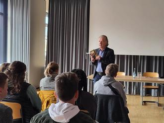 Um die Bedeutung und Wichtigkeit des Lesens und auch Vorlesens hervorzuheben, hatte die Schule den Stadtbürgerbürgermeister von Simmern zum Vorlesen in die Klassenstufe 7 eingeladen. Dr. Andreas Nikolay hatte zwei seiner Lieblingsbücher zur Auswahl mitgebracht. Die Jugendlichen konnten per Handabstimmung entscheiden, ob sie einen Ausschnitt aus dem Buch „Keiner dreht mich um“ von Arnulf Zitelmann oder „Die Alpen und wie sie unser Wetter beeinflussen“ von Sven Plöger und Rolf Schlenker hören wollten. Die überwältigende Mehrheit der Siebtklässler sprach sich in der Abstimmung für die Lebensgeschichte von Martin Luther King aus. Interessiert hörten die Schülerinnen und Schüler dem Kapitel über den Busboykott von Montgomery aus dem Jahre 1955/56 zu.