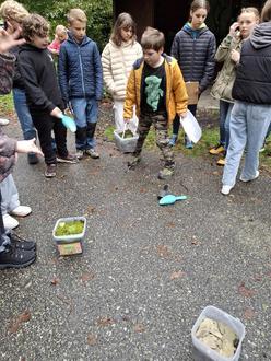 Im Mittelpunkt standen Experimente zum Versickerungsvermögen des Waldbodens. Die Schülerinnen und Schüler lernten, wie entscheidend der Waldboden als natürlicher Filter für unser Grundwasser ist. In einem praktischen Wettbewerb bauten sie eigene „Waldfilter“ aus Bodenschichten und wetteiferten um die beste Konstruktion.