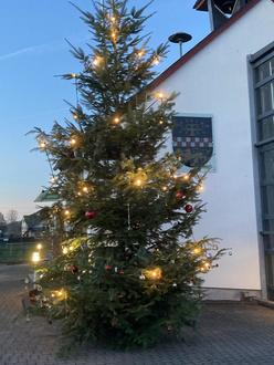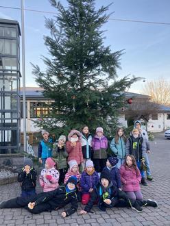 Zum Abschluss trafen sie am Vorplatz zur Biebertalhalle ein, wo sie dann auch den zuvor aufgestellten großen Weihnachtsbaum mit viel Freude weihnachtlich dekorierten.