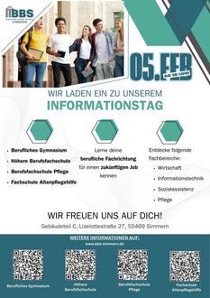 An der BBS Simmern findet auch in diesem Schuljahr wieder ein Informationstag für die Bildungsgänge Berufliches Gymnasium Wirtschaft, Höhere Berufsfachschule, Berufsfachschule Pflege und die Fachschule Altenpflegehilfe statt.