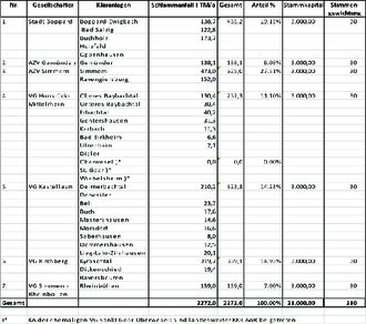 (2) Das Stimmrecht eines Anstaltsträgers im Verwaltungsrat richtet sich nach der Höhe seiner Stammeinlage; jeweils € 100,00 ergeben eine Stimme. Die Stimmen eines Anstaltsträgers im Verwaltungsrat können gem. §§ 14 b Abs. 3, 8 Abs. 2 KomZG nur einheitlich abgegeben werden.