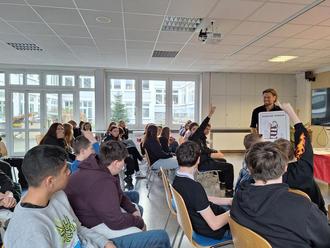Mittels interaktiver Rätselquiz‘ wurde den Schülerinnen und Schülern Lust am Lesen, Rätseln und Mitdenken gemacht. Dabei lösten die Jugendlichen bei den „Black Stories“ reale Kriminalfälle als literarische Rätsel aufbereitet und so inhaltlich spannend verpackt. Mit viel Engagement enträtselten die Lernenden die Krimifälle und wurden so zu „Lesekommissaren“. Fürs Leben lernen war dabei die Devise. So werden die anwesenden Schülerinnen mit Sicherheit kein scharfes Messer mehr mit der Spitze nach oben in die Spülmaschine einladen und auch beim Betreten eines Jacuzzis vorsichtig sein – die „Black Stories“ haben sie fürs Leben belehrt.