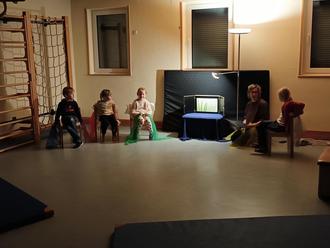 In der Kinderkonferenz hatten sich die Kinder der roten Gruppe gewünscht, dass sie etwas Zeit in der Kita verbringen, wenn es draußen schon dunkel wird. Diesen besonderen Nachmittag haben wir „Dämmerstündchen“ genannt. Er startete mit einem kleinen Kinderkino und danach wartete ein leckeres Buffet auf alle. Beim gemeinsamen Abschluss mit den Eltern führten die Vorschulkinder eine kleine Aufführung zur Geschichte „Wie der Schnee zu seiner Farbe kam“ auf.