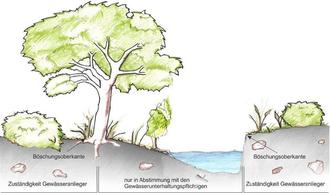 Mit dem Eigentum verbunden ist die Pflicht, die angrenzenden Böschungsbereiche zu pflegen und in ordnungsgemäßem Zustand zu halten.