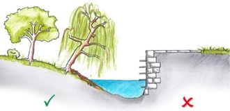 | - | Keine Befestigung der Ufer mit Mauern, Treppen od. sonst. Materialien, wie z. B. Betonplatten, Bauschutt, Bretter o.ä. |