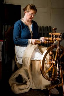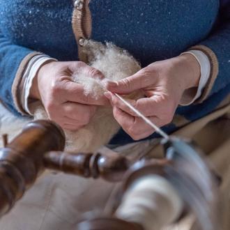 Die Kunst, am Spinnrad oder mit der Handspindel einen Wollfaden zu spinnen, kann am Samstag, den 13.04.2024 im Rheinland-Pfälzischen Freilichtmuseum erlernt werden.
